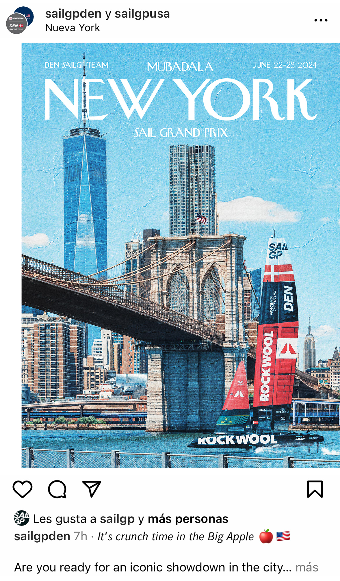 The ROCKWOOL Racing SailGP Team commissioned me to create a poster to promote the New York Grand Prix on their social networks, as well as to print and decorate their new offices in Barcelona. And here is the result.